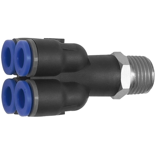 Multiple distributor, L 42 mm, 10 bar, plastic/brass, nickel-plated, for hose, 109789