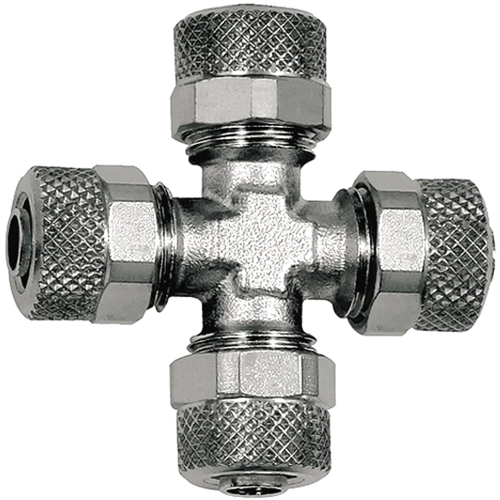 Cross connector, L 22.5 mm, 18 bar, brass, nickel-plated, for hose, 110637