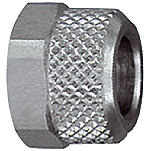 Cap nut, L 9 mm, 18 bar, brass, nickel-plated, for hose, 110642