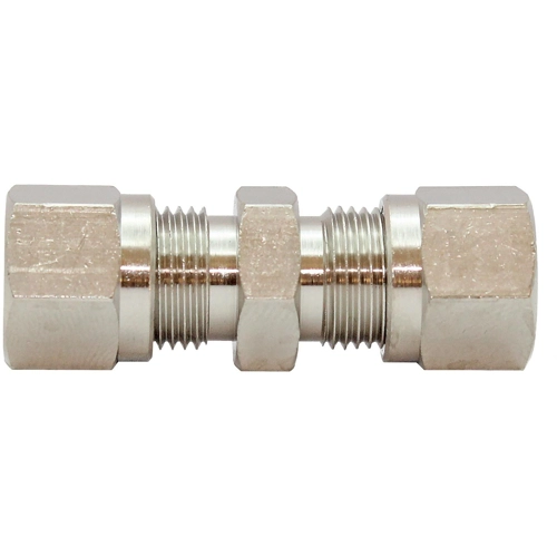 Screw connection, L 56 mm, 60 bar, brass, nickel-plated, for pipe systems, 111995