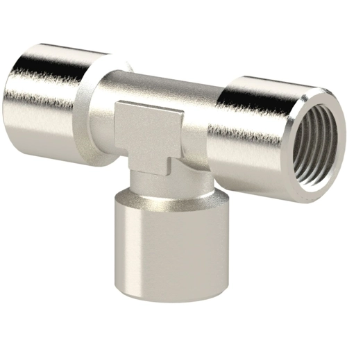 T connector, 60 bar, brass, nickel-plated, for pipe systems, 112765