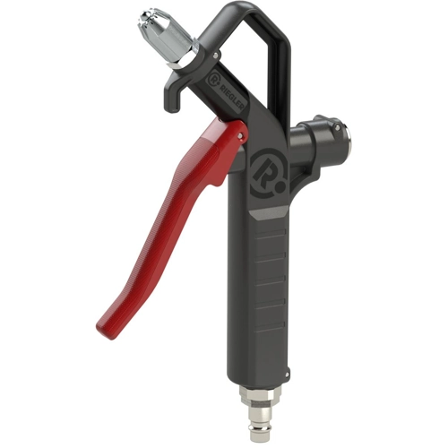 This blow gun features a metered design, plastic construction, and a safety nozzle that can be connected on top. It has a maximum pressure rating of 12 bar and a stem inner diameter of 13, making it suitable for blowing out and cleaning machines, motors, bearings, sliding surfaces, various types of bores, hollow bodies, molds, and more.