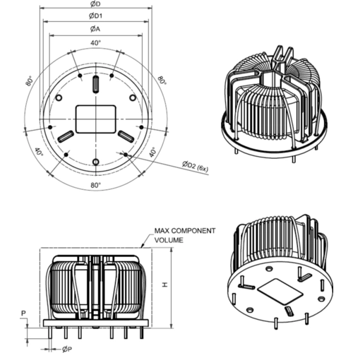 The RT8132-6-6M0 is a RT common-mode choke. It is mainly used to filter EMI noise on AC power lines up to 600 VAC. EMI noise of electronic equipment can go to the power lines and disturb the proper function of other devices like communication devices or control logic of robotics.