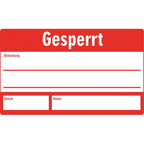 Quality assurance sign, text: "Gesperrt", (W) 30 mm, vinyl, 088.53-9-30X50-A, package with 5 pieces