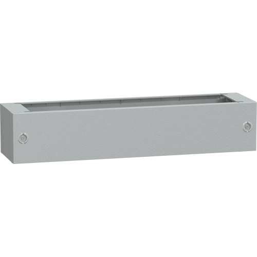 Plinth to be used with Thalassa PLA enclosures. The plinth is to be used in multi-purpose applications. The width is 994 mm, the height is 200 mm, the depth is 250 mm. The kit is made of fixing elements, 2 front panels and 2 side parts. The product is made of grey plastic (RAL 7035). Ingress protection rating is IP44 Mechanical protection rating is IK10. This product is qualified as a green premium, with minimal use of hazardous substances.