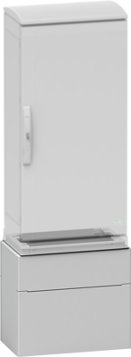 Plinth to be used with Thalassa PLA enclosures in multi-purpose applications. The width is 1035 mm, the height is 500 mm, the depth is 310 mm. The kit is made of fixing elements, 2 front panels and 2 side parts. The product is made of grey plastic (RAL 7035). Ingress protection rating is IP44, mechanical protection rating is IK10. This product is qualified as a green premium, with minimal use of hazardous substances.