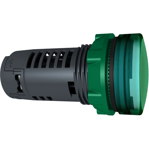 This Harmony XB5, plain lens monolithic green pilot light is supplied with 230 V to 240V AC, uses a universal LED and screw clamp terminals. This single component pilot light provides clear visual feedback on the status of your machines. It is easily installed into standard 22 mm diameter cut-outs and connected with simple screw-clamp connections. It is clearly distinguishable visually at a distance due to clear colors and illumination via universal LED, enabling complex machine statuses to be read at a glance. It is impact resistant, dust resistant, water resistant and vibration resistant thanks to its IP66 / IP67 / IP69 / IP69K, making it ideal for operation in harsh environments. Its plastic bezel makes it ideal for applications requiring good resistance to chemical agents and/or double electrical insulation.