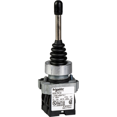 The XD2PA12 is a complete joystick controller diameter 22 mm with 2 directions - 1 NO per direction. It is part of the range Harmony XD controllers for hoisting applications.