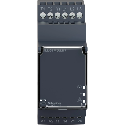 This Harmony RM35-T control relay allows monitoring of motor voltage and temperature control. This modular control relay is ideal for monitoring of electrical values with voltage and temperature variation in control of moving equipment's. It applies to a wide type of industrial automation applications such as hoisting, packaging, lifts, textile, water. It has one of market medium form-factors with 35mm width, allowing for a flexible and easy installation on DIN rail, using the same space as any modular 3-pole DIN device. It also offers a selectable memory function, integral LED for indicating control status, sealable cover, with simple and precise settings with screw trimmers. It provides automatic shutdown management and fault information to user for a quick fault identification and troubleshooting. Multi function controller for wide choice selected in hard-wired logic automated systems, ideal for refurbishment of old installations without using a PLC.