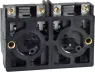 The XESD2241 features a double contact block with spring return mechanism, designed for front mounting. It has a 40 mm horizontal centers, and includes 4 normally open (NO) contact.