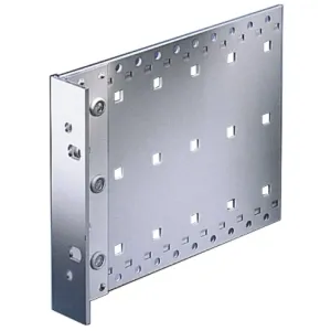 Side panel, type H, with handle holes, tox welded to the 19" bracket for textile gasket.