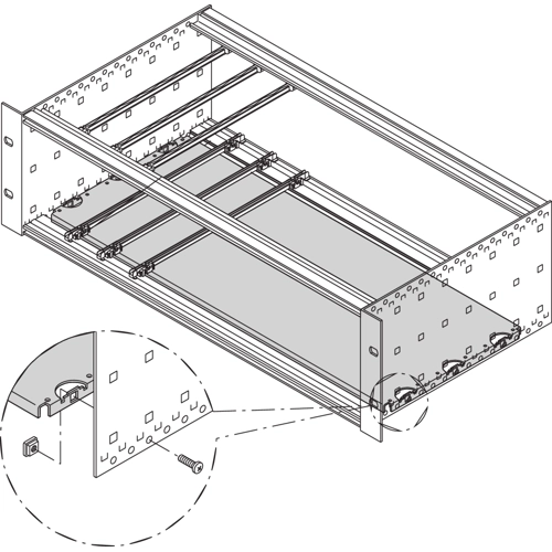 Mounting plate for heavy components or proprietary electronic assemblies. Suitable for RatiopacPRO/-AIR, CompacPRO and EuropacPRO.