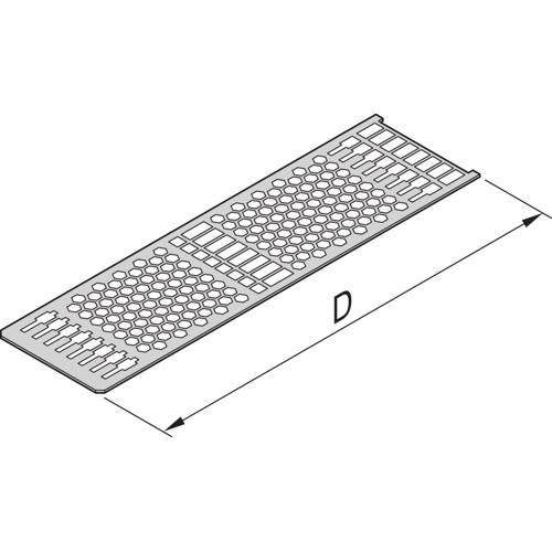 Cover plate for frame-type plug-in units, with perforation for guide rail fixing. The perforation guarantee an air flow rate by approximately 60%. The plate is inserted into a groove of the side panel.