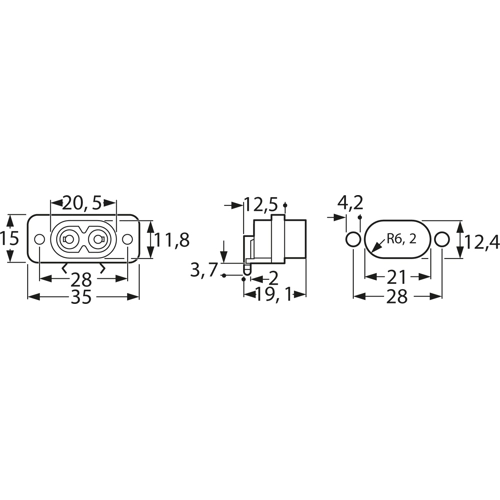 Panel plug C8, 2 pole, screw mounting, PCB connection, black, 6160.0015