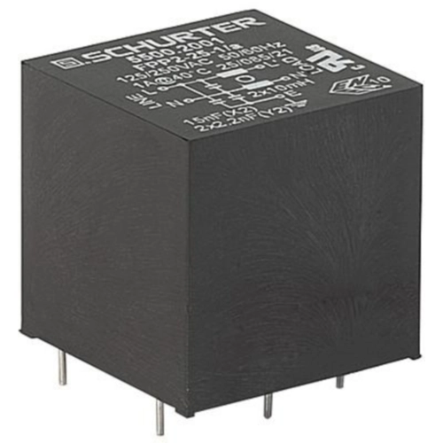 The 5500.2007 is an AC filter for PCB mounting cost optimized. This product is designed for use in industrial environments, also has approval from independent testing bodies according to national and international standards.