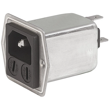 IEC Appliance Inlet with Filter, Protection Degree IP65 into the Appliance, Fuseholder 2-pole, Rear Mounting.