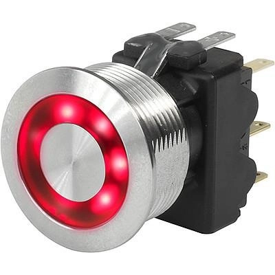 Vandal-proof pushbutton, 1 pole, silver, illuminated (red), 100 mA/30 V, mounting Ø 19.1 mm, IP67, 1241.6624.1111000B
