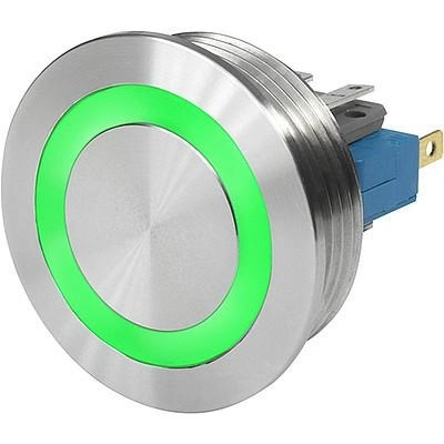 Vandal-proof pushbutton, 1 pole, silver, illuminated (green), 5 A/125 VAC, mounting Ø 30 mm, 30.1 mm, IP66/IP67, 3-145-619