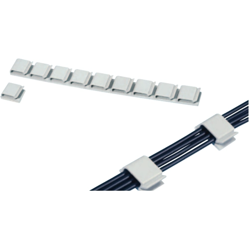 SES-CT adhesive miniature clamp. Adhesive foam protected by release paper. 10 carriers of 10 pre-cut cable clamps. Suitable for guide and route wires.