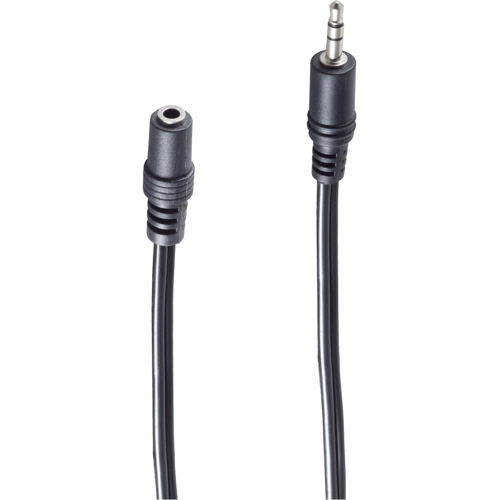 Extension cable, 2.5 m, black, 3.5 mm stereo jack plug, straight to 3.5 mm stereo jack socket, straight, BS30805-2.5