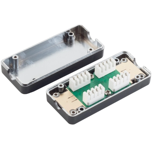 The BS75001-2 is a Cat. 7 LSA connection box for connecting network cables, suitable for Cat. 7 cables - 600 MHz, no soldering, screwing or stripping required connection tool required.