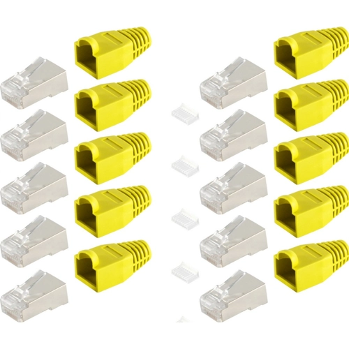 Network modular plug cat.5e cat.6, 8-pin, 8 contacts occupied, shielded, gold-plated contacts, with insertion aid and grommet, yellow.