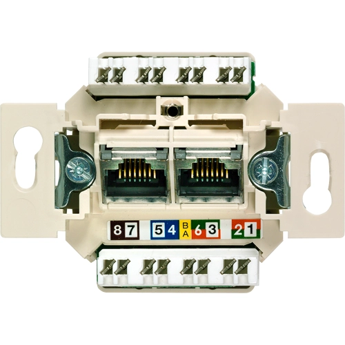 DELTA connection socket Universal connection unit 2x 8-pole RJ45 Cat. 6 A unshielded LSA-plus terminals Screw mounting DELTA m-system. m-system provides different module inserts for signaling and communication purposes.