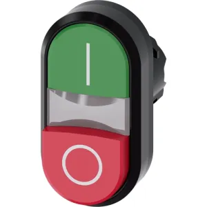 Twin pushbutton, 22 mm, round, plastic, green: I, red: O, pushbuttons, flat and raised Twin pushbuttons SIRIUS ACT for implementing two momentary contact type switching functions in one command point.