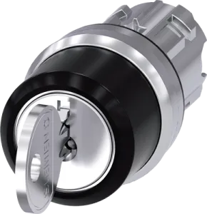 Key switch, Ronis, unlit, groping/latching, waistband round, 2 x 45°, trigger position 0 + 2, mounting Ø 22.3 mm, 3SU1050-4BP61-0AA0