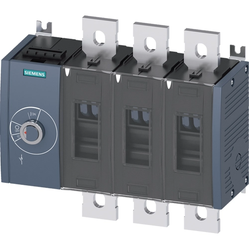 Switch disconnector 500 A, Size 4, 3-pole Lateral operating mechanism left Basic unit without handle flat terminal 3KD Switch disconnector up to 1600 A as efficient master, emergency stop or maintenance switch. 3KD switch disconnectors up to 1600 A from Siemens offer reliable operator protection and ensure high plant availability in industry, infrastructure and buildings. As main, EMERGENCY OFF or maintenance switches, 3KD switch disconnectors reliably connect and disconnect live electrical equipment and provide a safety isolating function and isolating distance in low-voltage circuits.