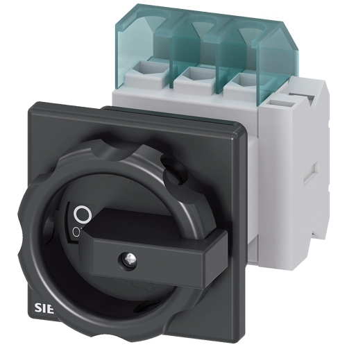 SENTRON, Switch disconnector 3LD, main switch, 3-pole, Iu: 25 A, Operating power / at AC-23 A at 400 V: 9.5 kW, front-mounted, 1 NC, 1 NO, rotary operating mechanism, black, Central mounting 22.5 mm of the handle .
