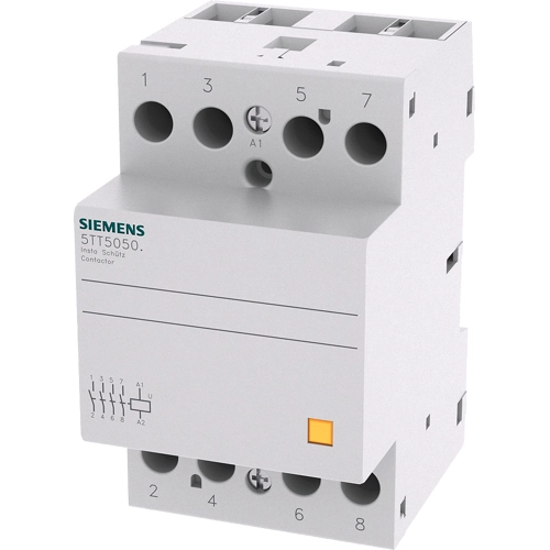 INSTA contactor with 4 NO contacts Contact for 230 V AC, 400V 63A Control 230 V AC Siemens switching devices for applications in residential and functional buildings and industrial applications. The innovative switching devices from Siemens are an important part of the SENTRON components for electrical installations. With the remote control switches, all-or-nothing relays, Insta contactors and time switches, they provide countless possibilities for implementing various switching functions. Whether for a residential buildings, infrastructure or industrial applications, Siemens offers the right portfolio for all switching functions.