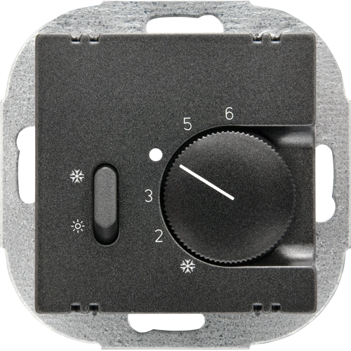 DELTA I-system room temperature controller, carbon metallic DELTA switches and socket outlets. Due to its eternally stylish shapes and a multitude of colors, our comprehensive range of products gives you a plethora of individual design options, which expertly emphasize the aesthetics of any room.