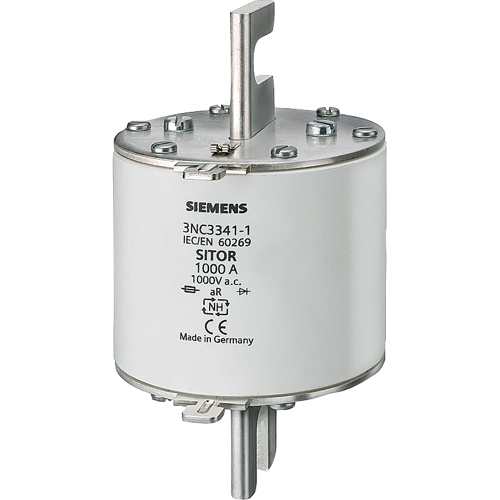 SITOR fuse link, with slotted blade contacts, NH3, In: 315 A, aR, Un AC: 1250 V, Un DC: 440 V, front indicator SITOR 3NE and 3NC semiconductor fuses protect power semiconductors from the effects of short circuits. As an important element of the SENTRON protective component line for electronic installations, the SITOR fuse system from Siemens provides effective protection for personnel, equipment and plants with reliable shutdown in the event of an overload or short circuit. The area of application also includes frequency converters with fuses in the input circuit and in the DC link and also UPS systems and soft-starters for motors.