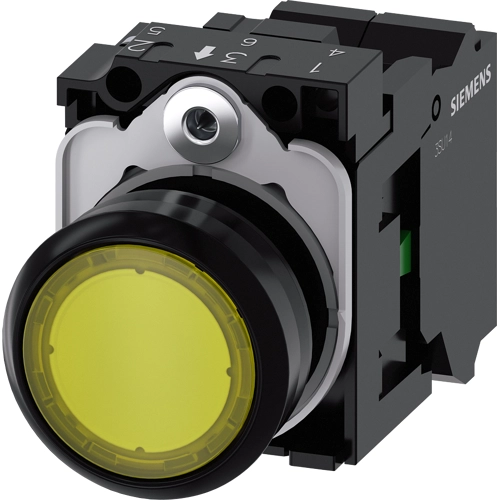 Illuminated pushbutton, 22 mm, round, plastic, yellow, pushbutton, flat, momentary contact type, with holder, 1 NO, LED module with integrated LED 24 V AC/DC, Spring-type terminal Illuminated pushbuttons SIRIUS ACT for switching and controlling electrical loads.