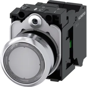 Vandal-proof pushbutton, clear, illuminated (white), mounting Ø 22.3 mm, IP20/IP66/IP67/IP69/IP69K, 3SU1153-0AB70-3BA0