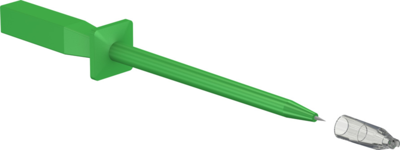 Test probe with stainless steel needle, ground to a sharp point, e.g. for piercing thin insulation and oxide layers. The insulation can be cut back in steps to bare a suitable length of tip. The test probe features an anti-roll finger guard. Ø 4 mm rigid socket in handle. Supplied with protective cap.