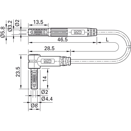 The 65.9577-10021 is a highly flexible test lead with insulation in PVC or silicone. One end with molded in-line Ø 2 mm MULTILAM plug with rigid insulating sleeve. The other end with molded right-angled Ø 2 mm MULTILAM plug with rigid insulating sleeve.