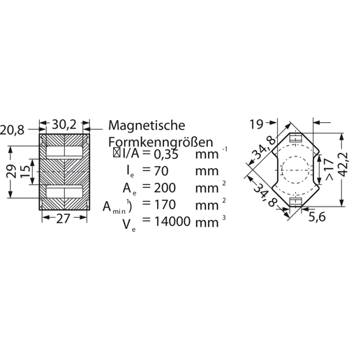 To IEC 62317-4. Preferably for power applications. Made of silicon ferrite materials; refer to the corresponding data table at the end of the cores section. without center hole, gapped.