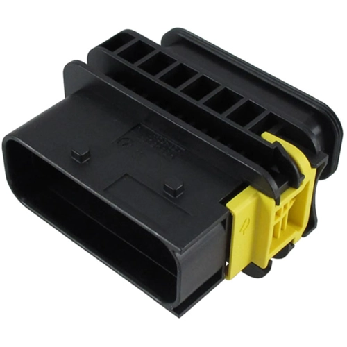 Connector & housing type: housing for male terminals, Connector system: wire-to-wire, Sealable: yes, Hybrid connector: yes, Primary locking feature: on the terminal, Number of positions: 16, Number of rows: 2, Operating voltage: 60 VDC, Nominal voltage architecture: 12 V, 24 V, 42 V, 60 V, Body material: PBT GF, Primary product color: black, Mating tab width: 1.6 mm, 2.8 mm, Mating alignment type: polarized, Centerline (pitch): 4-6 mm, Row-to-row spacing: 6.8 mm, 7.5 mm, 7.55 mm, Operating temperature (max): 70 °C, 80 °C, 85 °C, 90 °C, 100 °C, 105 °C, 110 °C, 120 °C, 125 °C, 130 °C, 140 °C, Operating temperature range: -40-140 °C, Circuit application: signal, UL flammability rating: UL 94V-0, Packaging method: carton, Serviceable: yes, Connector position assurance capable: no