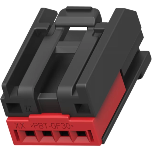Connector & housing type: housing for female terminals, Connector system: wire-to-wire, Sealable: no, Hybrid connector: no, Primary locking feature: integrated in housing, Number of positions: 4, Number of rows: 1, Body material: PA GF, Primary product color: black, Mating alignment type: polarized, Product height: 11.75 mm, Operating temperature (max): 70 °C, 75 °C, 80 °C, 85 °C, 90 °C, 100 °C, Operating temperature range: -40-100 °C, UL flammability rating: UL 94HB, Serviceable: yes, Connector position assurance capable: yes