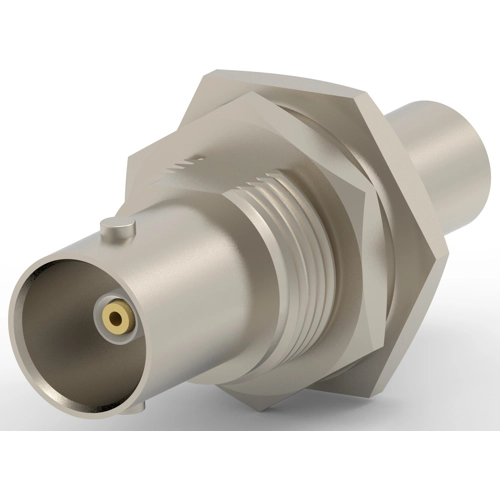 RF Interface: BNC, RF Connector Style: Jack, Compatible With RF Cable Type: Belden 9907,KX 15, RG 141A, RG 58C, URM 43, URM 76, Connector System: Cable-to-Panel, Sealable: Yes, Number of Positions: 1, Number of Coaxial Contacts: 1, Impedance: 50 Ω, Body Insulation: With, Cable Connector Orientation: Straight, Body Material: Zinc, Body Material Finish: Plated, Body Plating Material: Nickel, Crimp Type: Hex, RF Connector Center Contact Plating Material: Gold, RF Connector Center Contact Material: Brass, Termination Method to Wire & Cable: Crimp, Panel Mount Feature Type: Hex Nut, RF Connector Coupling Mechanism: Bayonet, Connector Mounting Type: Panel Mount, RF Contact Captivation Method: Mechanical, Detent: With, Panel Cutout: 12 x 12.9mm D-Shape, RF Connector Mated Outer Diameter (Approximate): 14.53 mm, Operating Temperature Range: -55 – 85 °C, Operating Frequency: 4 GHz, Packaging Method: Single Pack, Additional Features: Hardware Included, Dielectric Material: Polyphthalamide