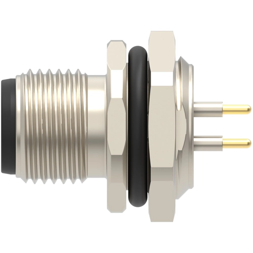 Standard circular connector, Wire-to-Panel, 4 Position, Sealable, Printed circuit board, Signal, Reverse gender, Nickel, Brass.