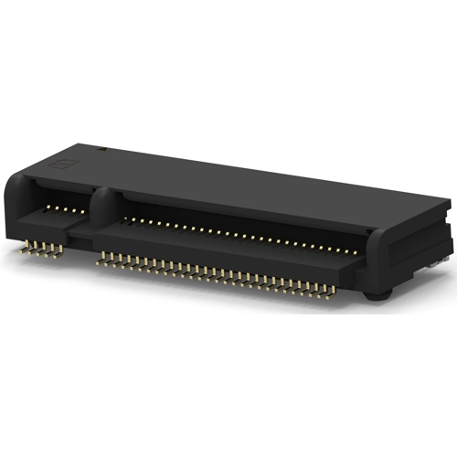 Connector System: Board-to-Board, Sealable: No, Connector & Contact Terminates To: Printed Circuit Board, PCB Mount Orientation: Right Angle, Keying Code: B, Number of Positions: 67, Operating Voltage: 50 VAC, Contact Base Material: Copper Alloy, Contact Mating Area Plating Material: Gold, Contact Current Rating (Max): 0.5 A, Termination Method to Printed Circuit Board: Surface Mount, Connector Mounting Type: Board Mount, Housing Color: Black, Centerline (Pitch): 0.5 mm, Connector Width: 8.7 mm, Connector Height: 3.2 mm, Operating Temperature Range: -40 – 80 °C, Circuit Application: Power, Packaging Method: Tape & Reel