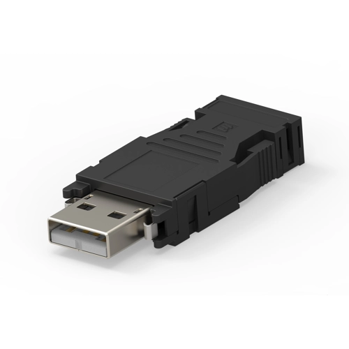 USB Connector Type: A, USB Version: 2.0, Connector & Housing Type: Plug, Connector System: Wire-to-Wire, Sealable: No, Number of Ports: 1, Number of Positions: 4, Connector Profile: Standard, Shell Plating Material: Nickel over Copper, Contact Current Rating (Max): 1.5 A, Contact Mating Area Plating Thickness: 0.76 µm, Locating Posts: Without, PCB Mount Location: Cable Mount, PCB Mount Retention Type: None, Connector Mounting Type: Cable Mount (Free-Hanging), Body Orientation: Straight, Housing Color: Black, Soldering Temperature (Max): 350 °C, Operating Temperature Range: -55 – 85 °C, Assembly Process Feature: None, Circuit Application: Power, Signal & Data, Industry Standard: USB 2.0, Degree of Protection: IP20, Packaging Method: Tray, Packaging Quantity: 1, Comment: Latching USB Plug