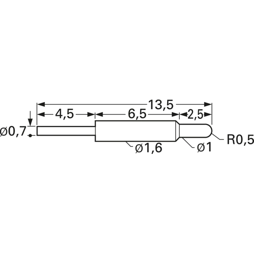 Charge and battery contact, round head, Ø 1 mm, travel 2.5 mm, pitch 2.54 mm, L 13.5 mm, TK0060B.J.1,00.C.85.A