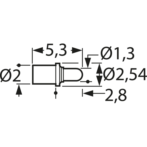 Charge and battery contact, round head, Ø 1.3 mm, pitch 2.54 mm, L 5.3 mm, TK53B.05.1,30.C.50.A