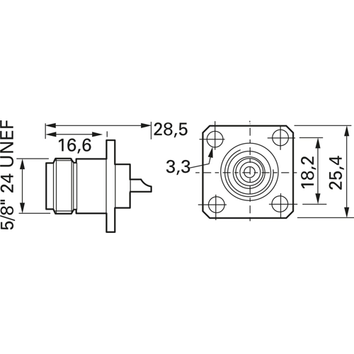 N flange socket 50 Ω, straight, 100024104