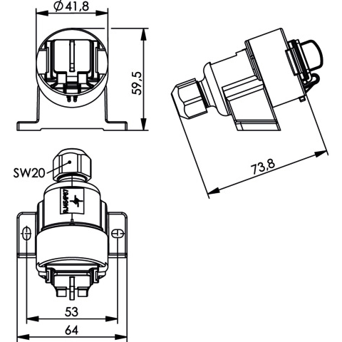 Connector for modern industrial applications need to be designed in such a way that they simplify processes and cope with faster data transmission. The connector of Variant 6 are standardized in the IEC 61076-3-106, designed to meet the demands of harsh industrial environments, guaranteeing protection class IP67 when mated. The locking clasps allow easy, tool-less opening as well as a secure locking with protection class IP67. The RJ45 plug and bulkhead inserts stand out due to high power reserves and offer transmission characteristics of Class EA acc. to ISO/IEC11801.