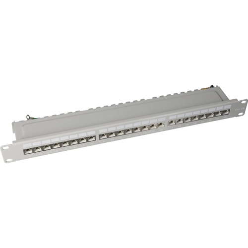 Patch panel, 24 x RJ45, horizontal, 1 row, (W x H x D) 483 x 44.5 x 100 mm, gray, 1822-24C6A-1U